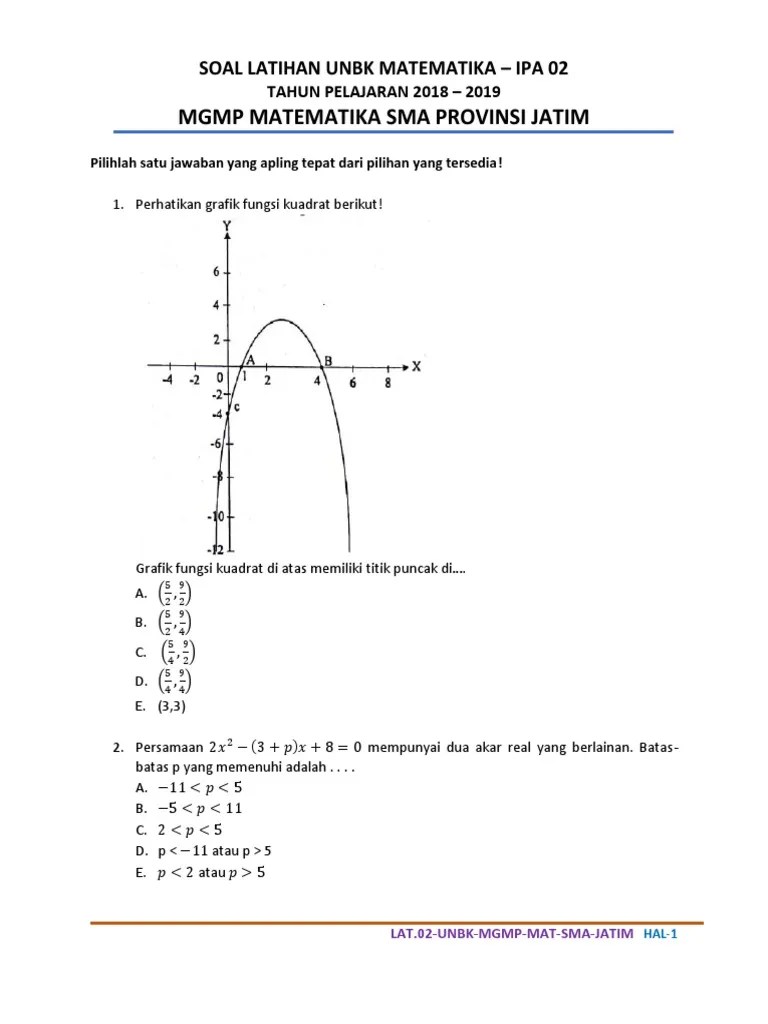 latihan soal unbk matematika ips. soal identitas matematika peminatan paket kelas xi. Nah bagi adik adik yang sedang mencari contoh soal latihan un matematika untuk kelas 6 sd. soal ini sudah kakak susun dalam bentuk pilihan ganda dan essay untuk pilihan ganda sebanyak 40 soal dan essay 10 soal. Paket soal dan kunci jawaban latihan ujian sekolah us dan ujian nasional un unbk unkp sma tahun 2018 2019 ini terdiri dari soal latihan dan kunci jawaban ujian sekolah us dan ujian nasional un sma 2018 2019 semua mapel untuk jurusan ipa yang terdiri dari mata pelajaran bahasa indonesia matematika bahasa inggris fisika kimia dan.
