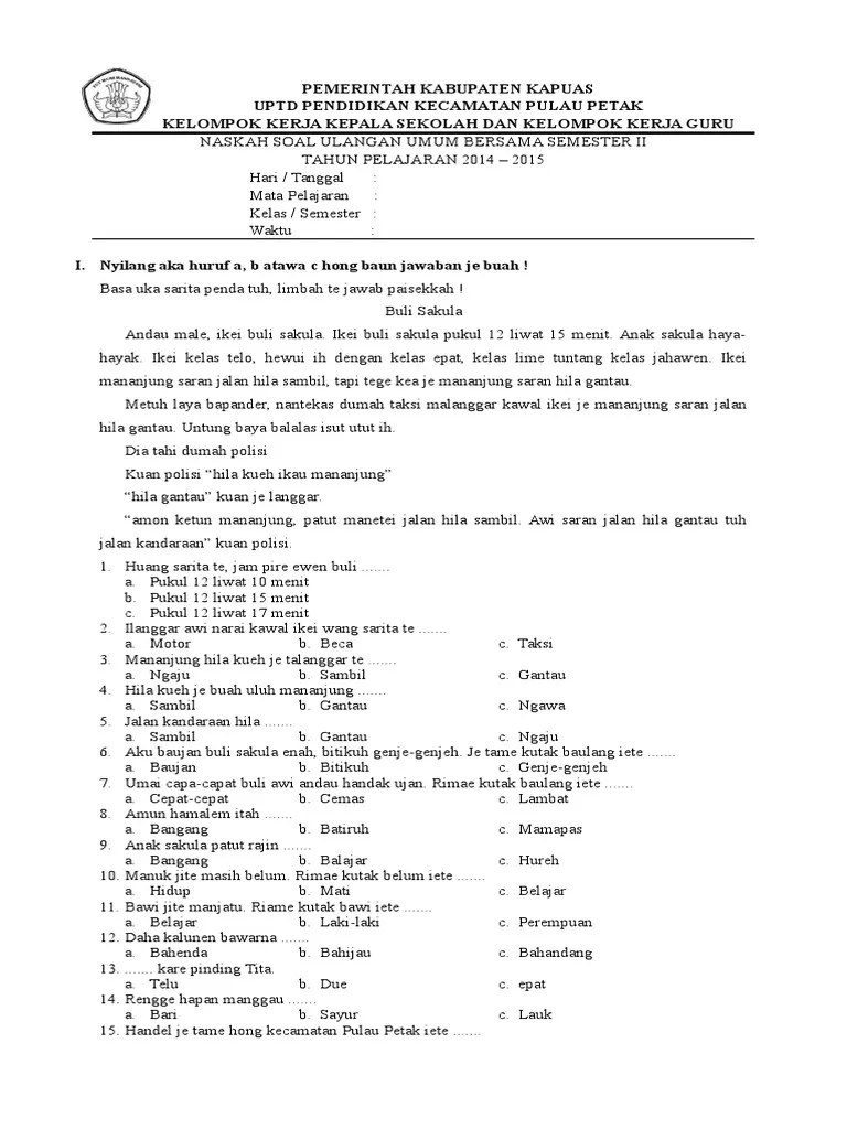 Soal Bahasa Dayak Ngaju Kelas 6 Sd / Uts Muatan Lokal Bahasa Banjar - Contoh soal soal bahasa dayak ngaju kelas 4 sd .