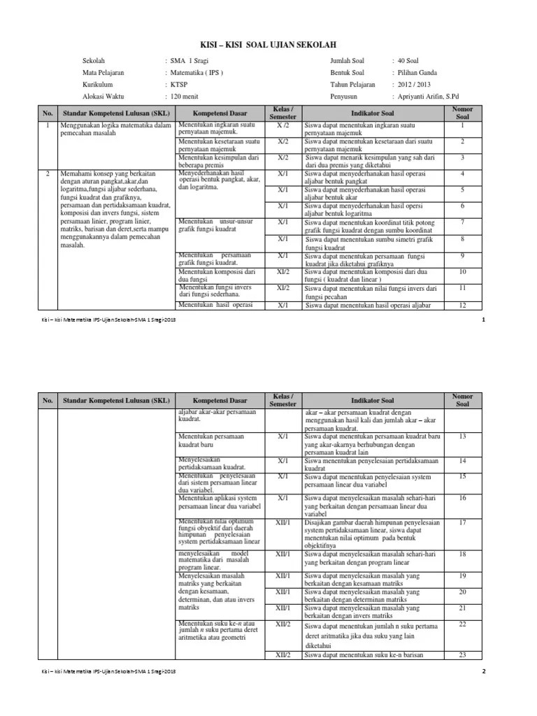 Contoh latihan soal kisi kisi soal matematika kelas x semester 2 . Masalah yang berkaitan dengan bentuk pangkat, akar, dan logaritma. Kisi kisi soal matematika sma kelas xi semester ganjil doc. No materi pokok kompetensi dasar. Memecahkan masalah yang berkaitan dengan bentuk pangkat, akar, dan logaritma. Guru sd smp sma contoh soal lengkap matematika kelas 12 pelajaran statistika doc. Matematika kompetensi dasar 1.1 menggunakan aturan pangkat, .